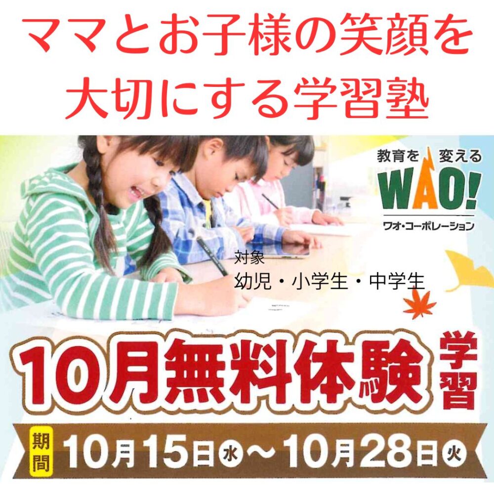 現在、10月無料体験学習キャンペーン中
