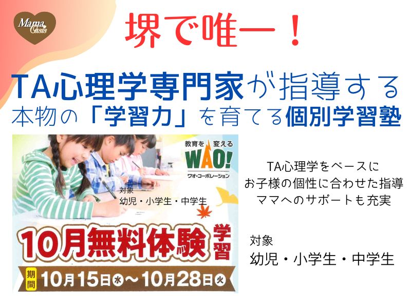 【10月無料体験】堺で唯一!TA心理学専門家が指導する、本物の「学習力」を育てる個別学習塾「スタッド学習教室」@堺 緑ヶ丘&浜寺