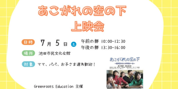 【7/5㈯参加者募集!】教科書がない小学校があるって本当!?「あこがれの空の下」上映会@池田市