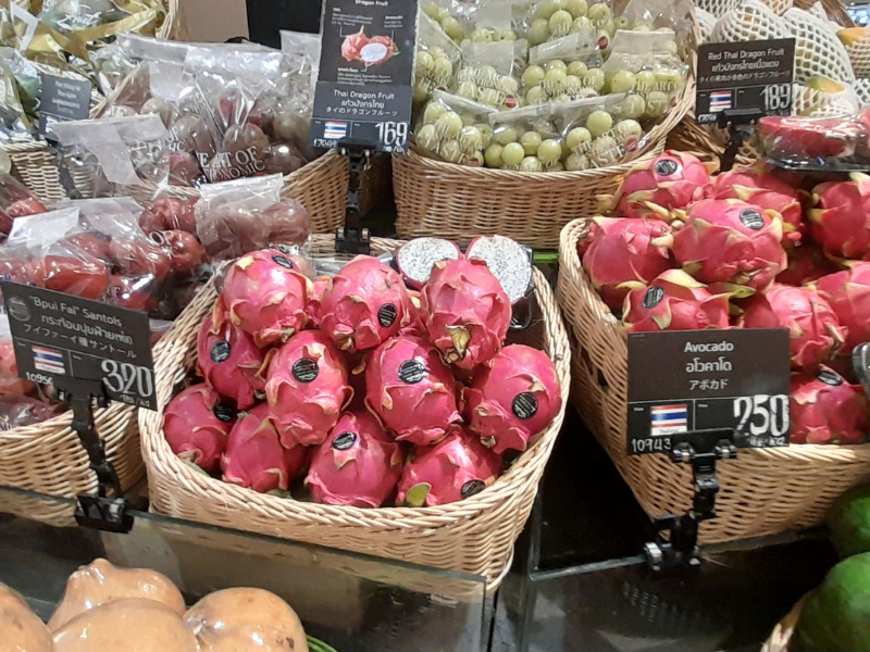 日本でもスーパーで見かけるようになったドラゴンフルーツですが、タイでは定番のフルーツです。