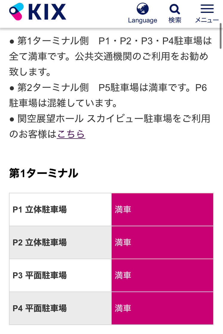 ぶっつけ本番で関空直営駐車場に向かうこともできるが、満車だと引き返しが難しいので空きができるのを現地で待つしかない。