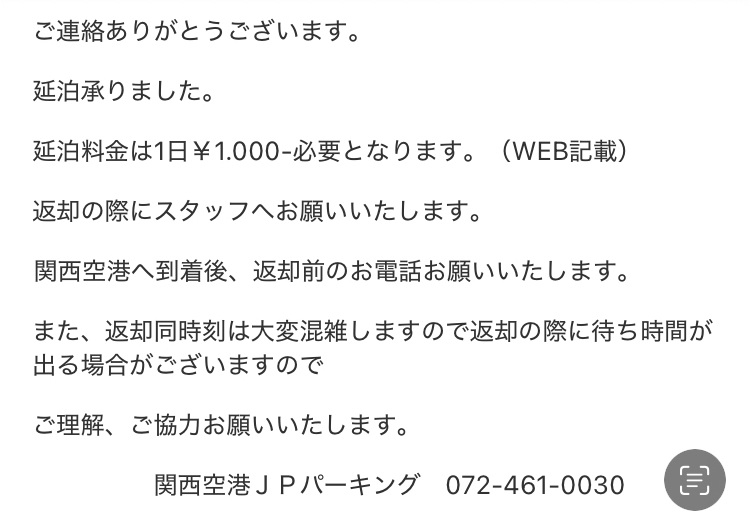 今回、帰国予定日に便が欠航し延泊になったのですが、その際もメールで延泊する旨と変更になった便名を登録するだけで柔軟に延泊対応をしてくださりました。