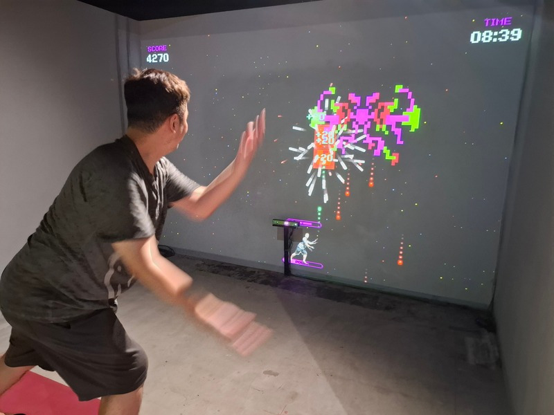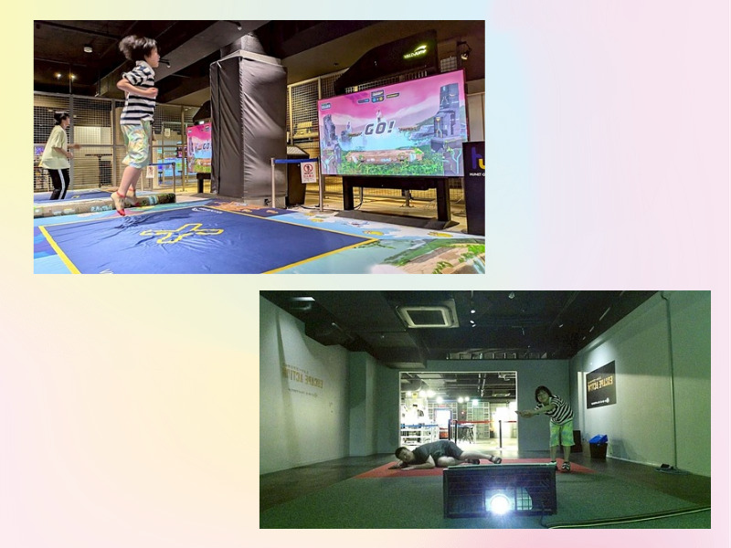 トランポリンでひたすらジャンプするゲームや、画面に映ったポーズを次々にするゲームなど、全身運動系のアトラクションが満載。