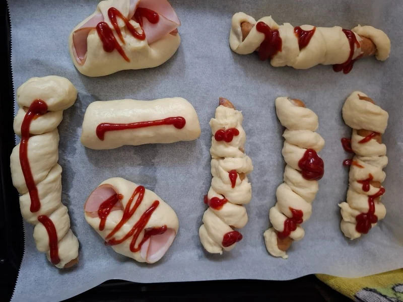 冷蔵庫にあるハムやウィンナーを使い、お惣菜パンをたくさん作っています。