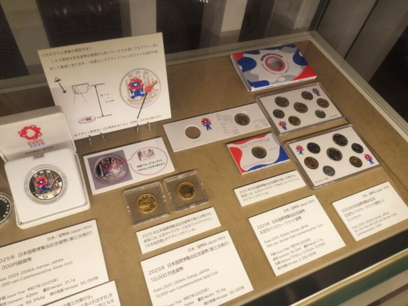 記念硬貨の展示エリアには、今年ならではの「ミャクミャクの硬貨」もありましたよ。