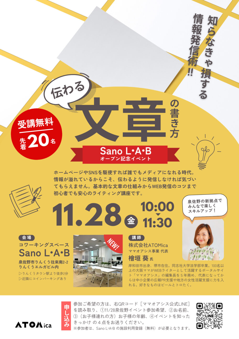 ママライター限定の講座しかしてこなかった檜垣ですが、超ウルトラ久しぶりに地元大阪で一般向けに生セミナーします!