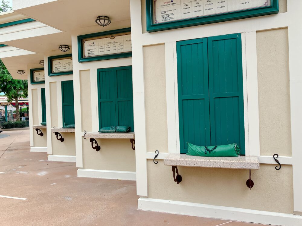 チケット窓口には重りが置かれていて、台風対策も徐々に進んでいます。