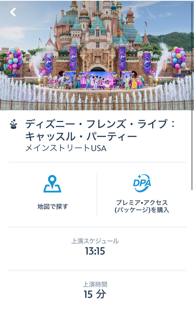 そろそろクローズかもと思っていた矢先、初日に見逃してしまっていた「ディズニー・フレンズ・ライブ: キャッスルパーティ!」が開演されるとの朗報が…!