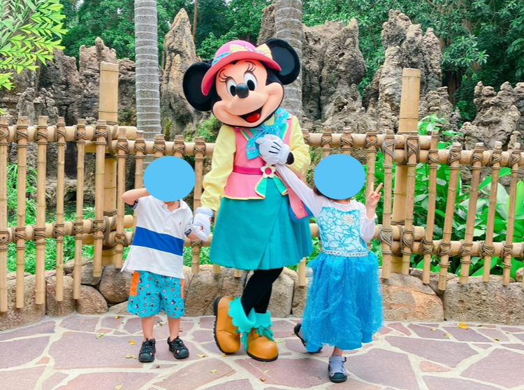 食後、次のエリアを目指しパークを散策していたところ、グリーディングをしているミニーちゃんが…