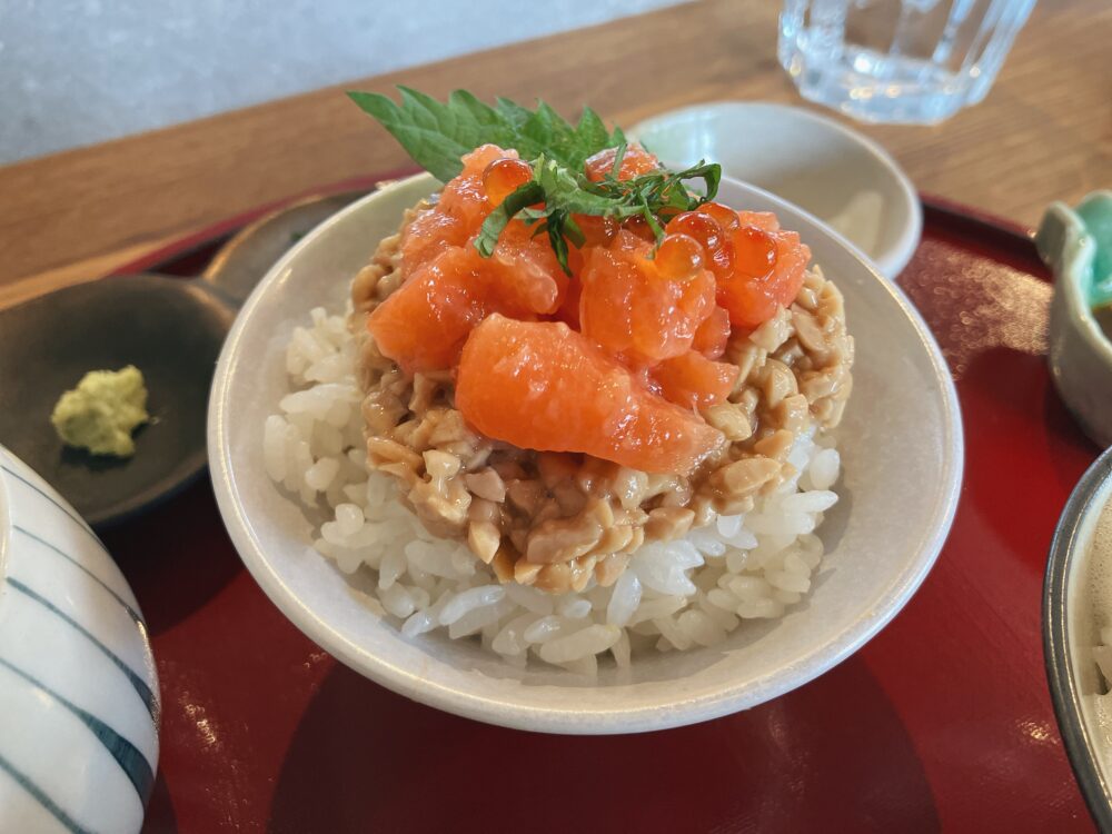 自宅でサーモンと納豆を合わせて食べることがない私には新鮮でしたが、とてもおいしくいただきました。