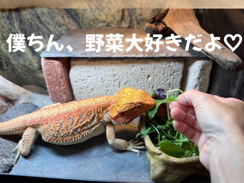 アダルト期となった今は小松菜、人参、ベビーリーフなどを毎日あげています。
