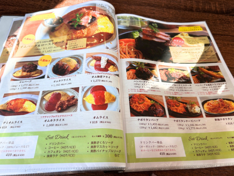 特に 国産牛 100%のハンバーグが人気で、ランチやディナーでは本格的な洋食が楽しめます。