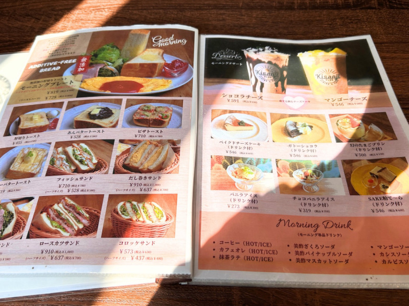 サンドイッチやモーニングプレート、無添加の厚切り食パンなどラインナップも充実。