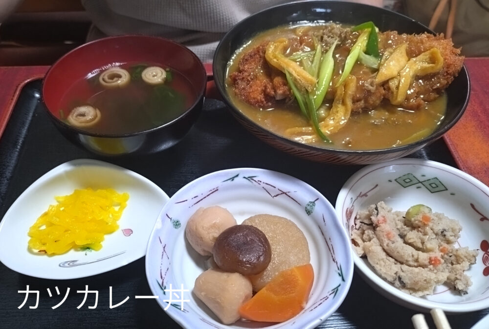 夫はカツカレー丼を注文しました。