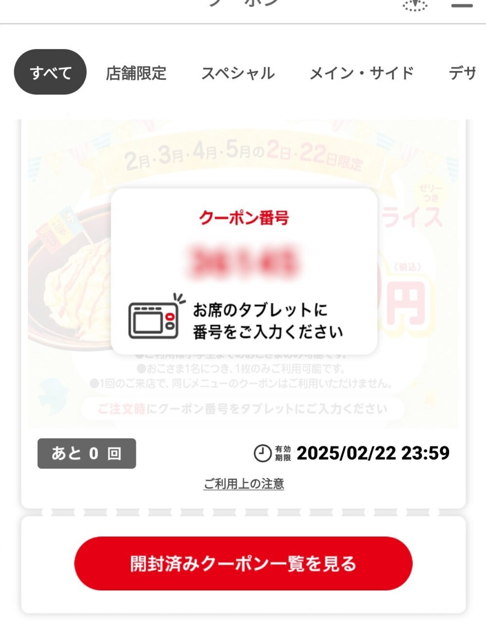 2日または22日になると、クーポン一覧に表示されます。