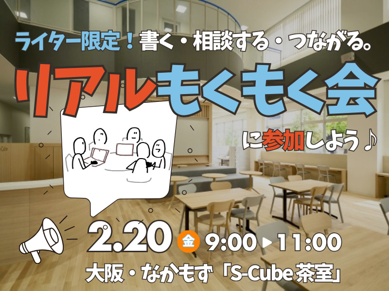 ・もくもく会:2月20日(金)22時〜「オンラインで集まって記事を黙々と書く時間」
