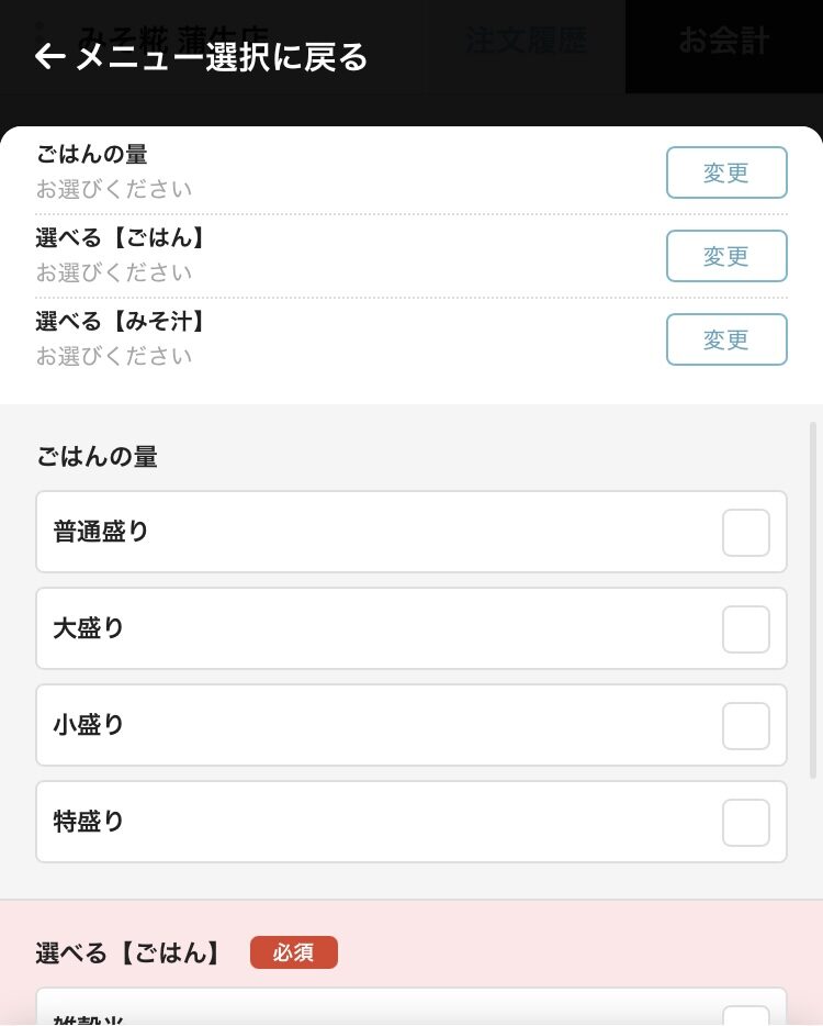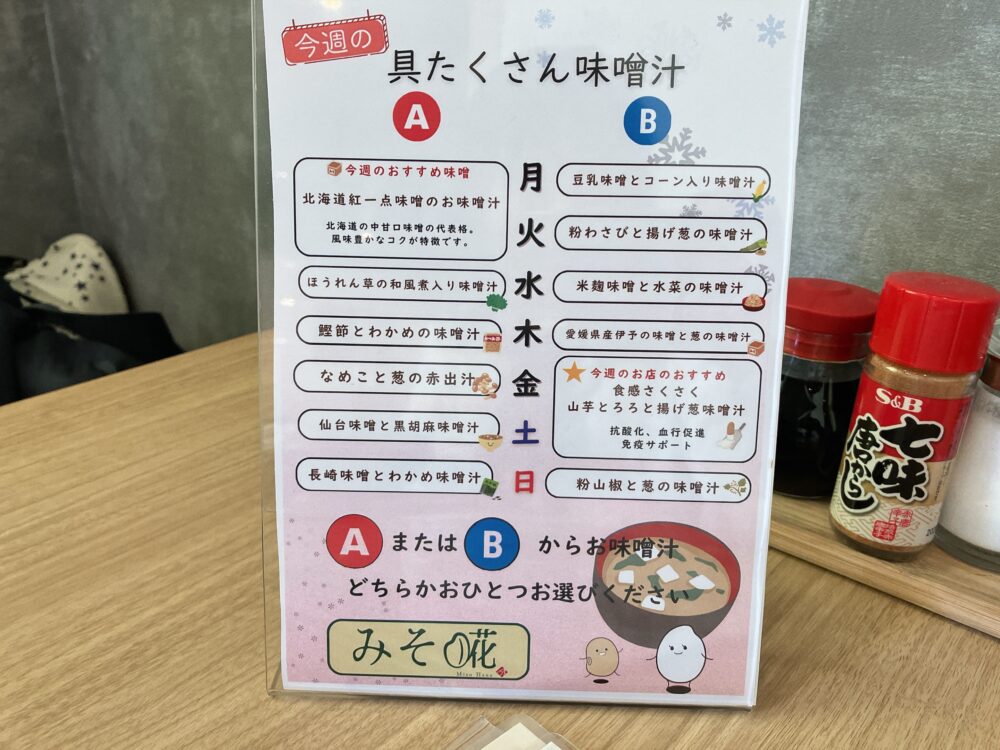 そして、ごはんの種類やお味噌汁の種類も2種から選べるんです。