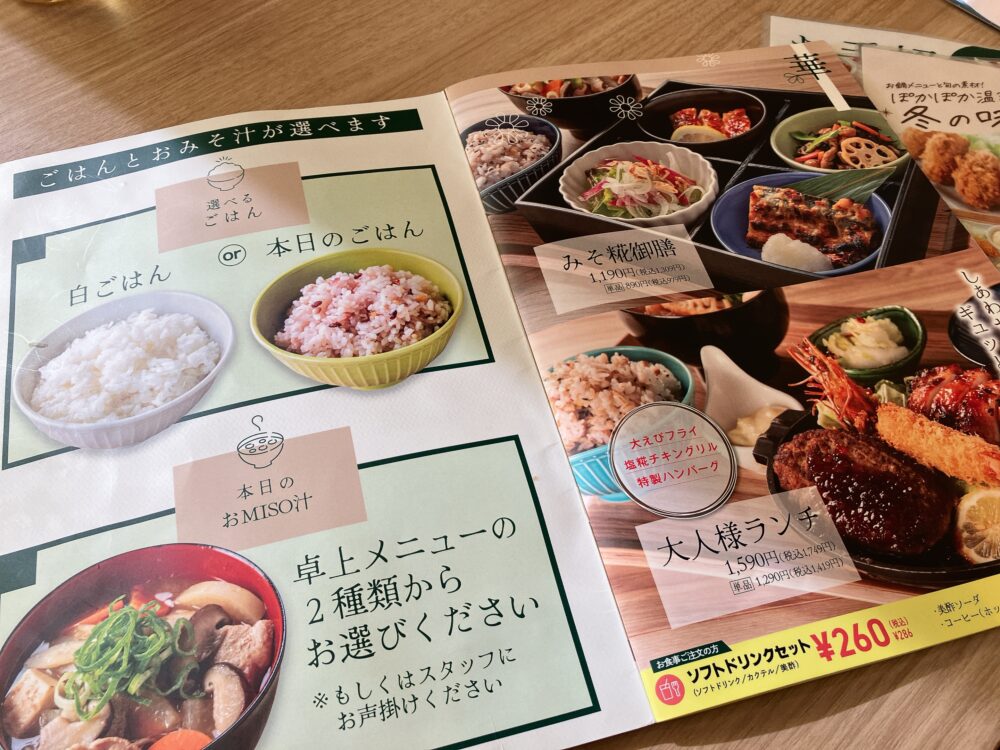 お店のイチオシであろう「みそ糀御膳」や「大人様ランチ」もとても気になります。