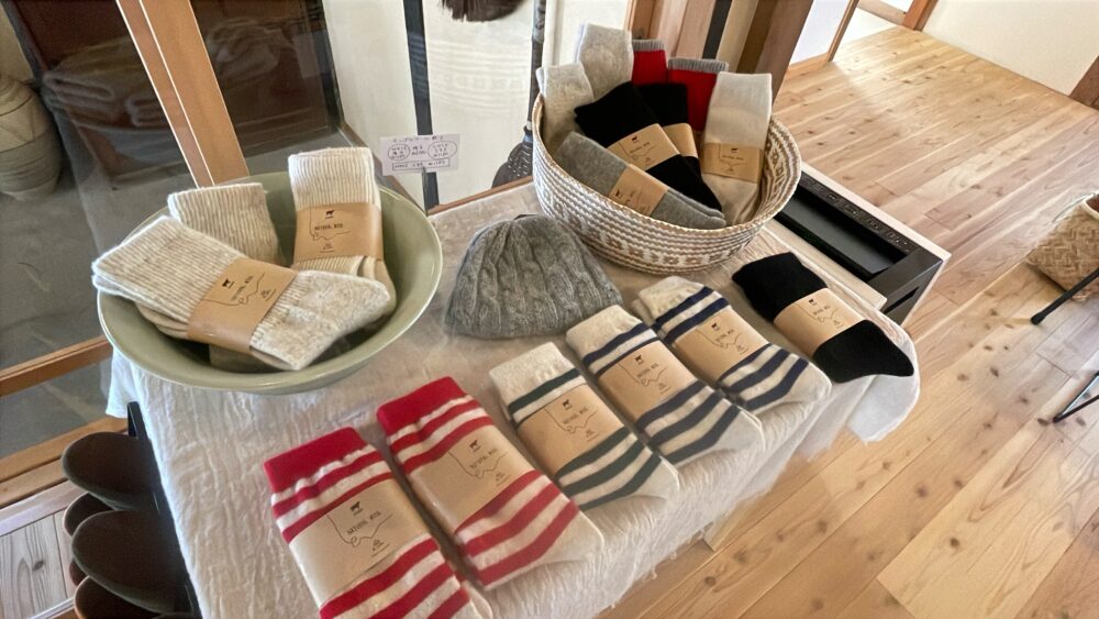 そしてコーナーにはオーナーセレクトのあったか〜い靴下が販売されています。