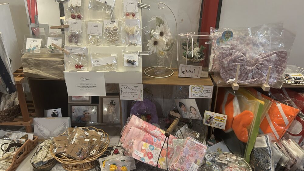 アクセサリーや小物など、作家さんのあたたかみを感じられるアイテムが並び、見ているだけでも楽しい空間です。