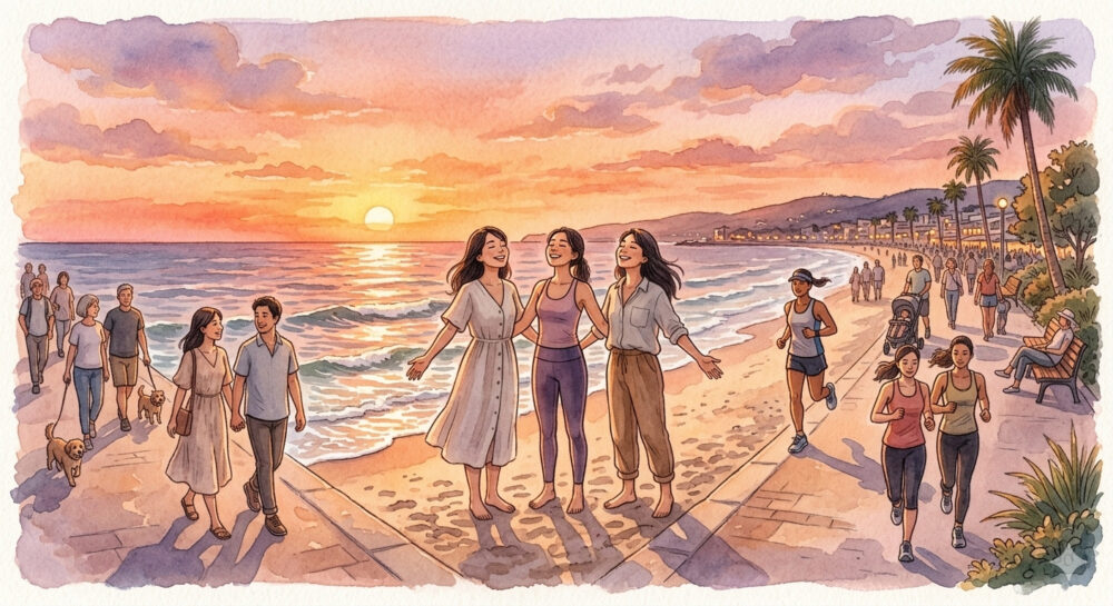 夕暮れの海を眺めると、その雄大さを感じられます。