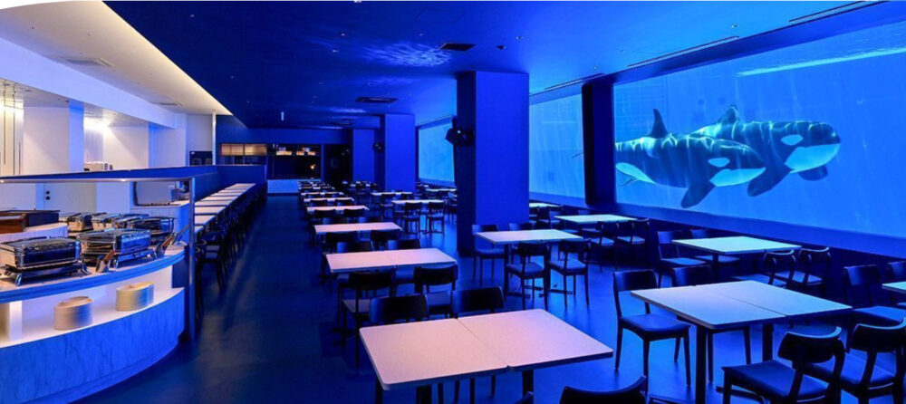 レストランで、オルカ(シャチ)を見ながらビュッフェを楽しめる!