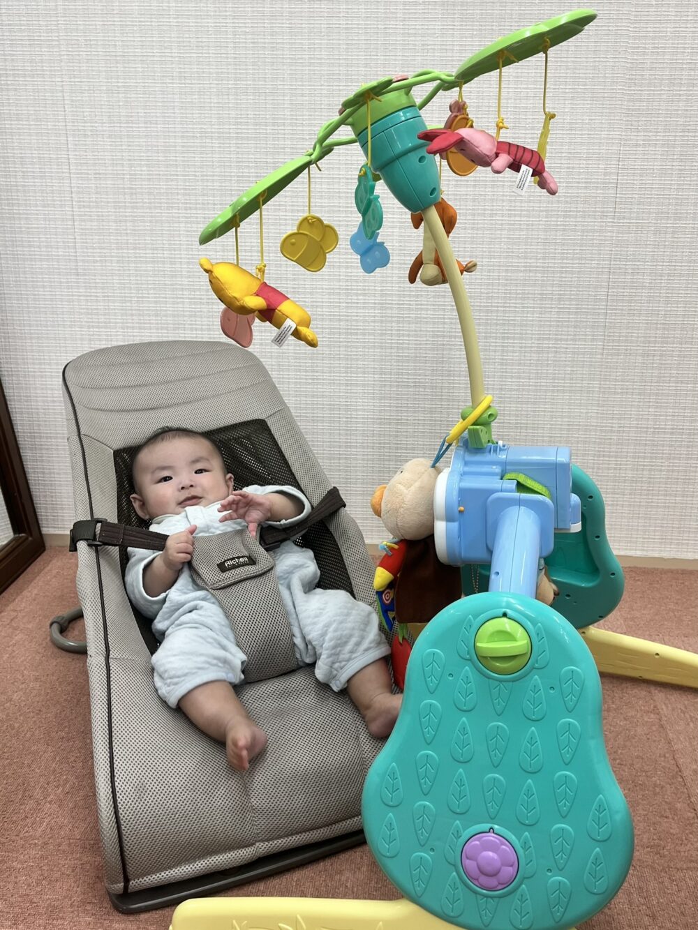 ▲小さなお子さま用のバウンサーもお借りできるので施術中も安心(患者さまのお子さまに撮影協力いただきました)
